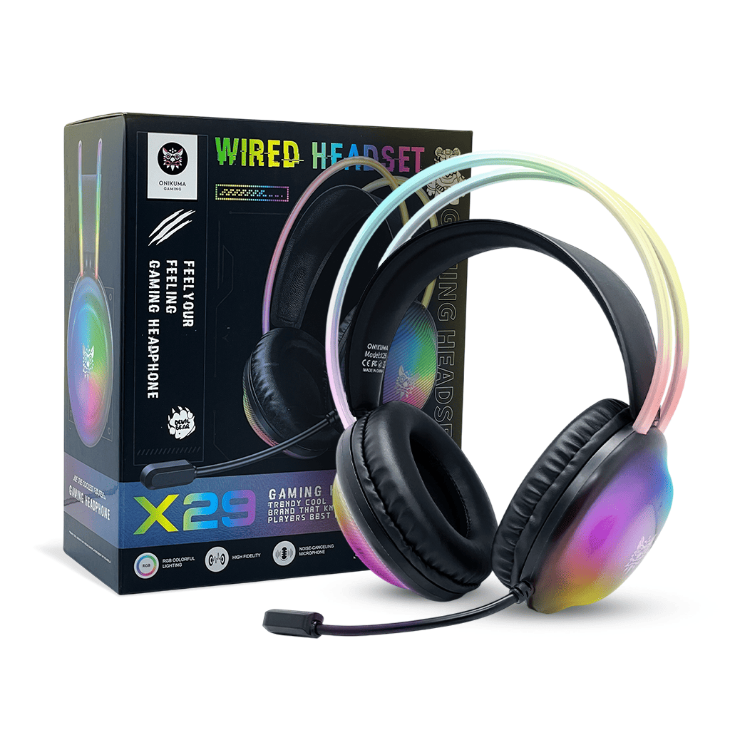 Los audífonos ONIKUMA X29 están diseñados para gamers que buscan destacar. Con controladores de $40text{mm}$ de alta precisión, ofrecen un paisaje sonoro envolvente que te permite escuchar cada paso y detalle en tus partidas. Su diseño ergonómico y ligero garantiza comodidad durante horas, mientras que su iluminación RGB dinámica añade el toque profesional a tu estación de batalla.