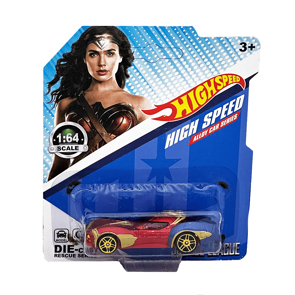 Velocidad y estilo heroico. Vehículo de aleación High Speed escala 1:64, inspirado en Wonder Woman. Diseño Die-Cast de alta durabilidad.