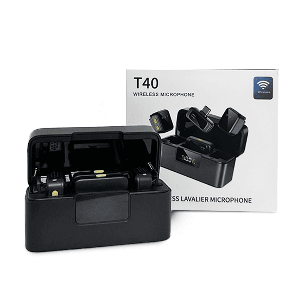 Micrófono Inalámbrico Lavalier T40 con Estuche de Carga (Dual)