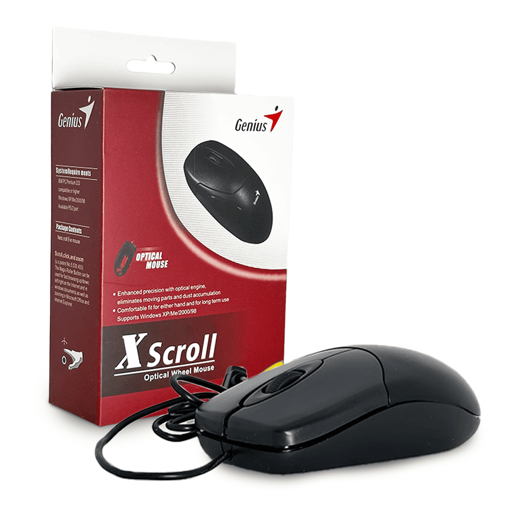 Rendimiento comprobado. Mouse Genius XScroll con motor óptico de precisión mejorada, diseño ambidiestro y conexión USB para uso intensivo.